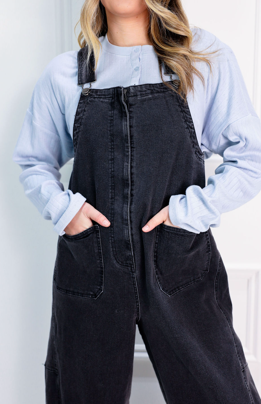 Embrace laid-back cool in these black denim overalls with a vintage-inspired washed finish. The classic silhouette pairs effortlessly with everything from crop tops to oversized sweaters, making them a go-to for casual days. Comfortable, timeless, and endlessly stylish.