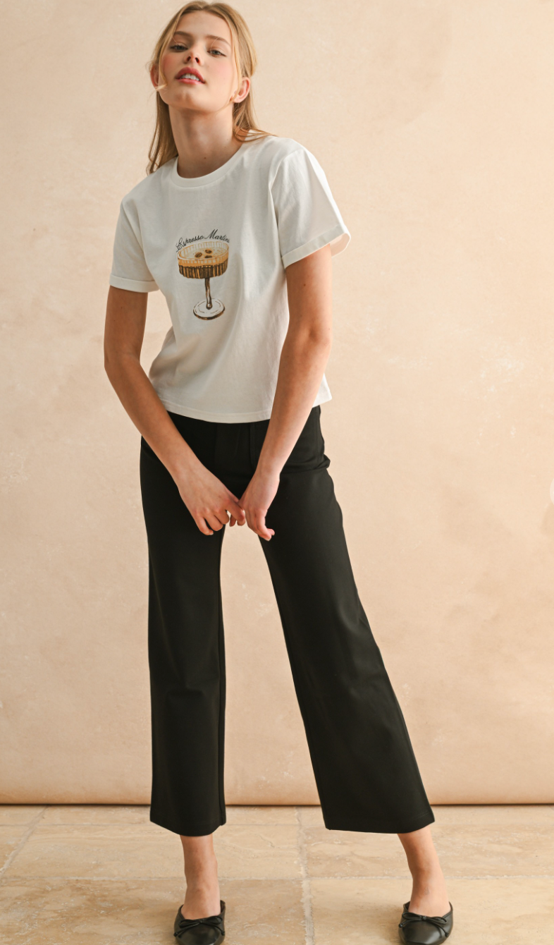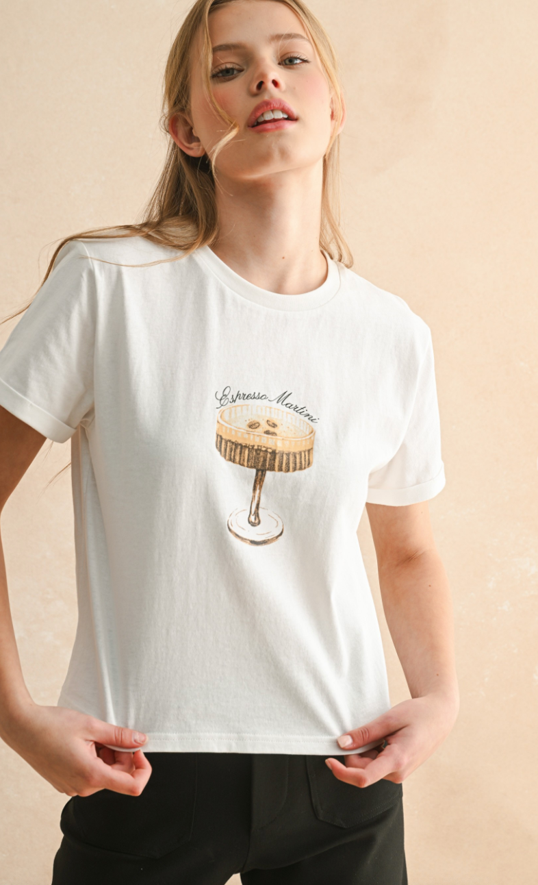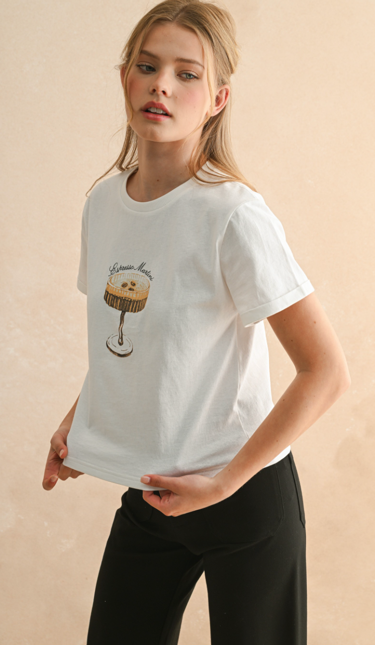 The Espresso Martini Graphic Tee brings a little buzz to your basics. With a relaxed fit and embroidered cocktail detail, it’s a playful nod to your favorite pick-me-up.