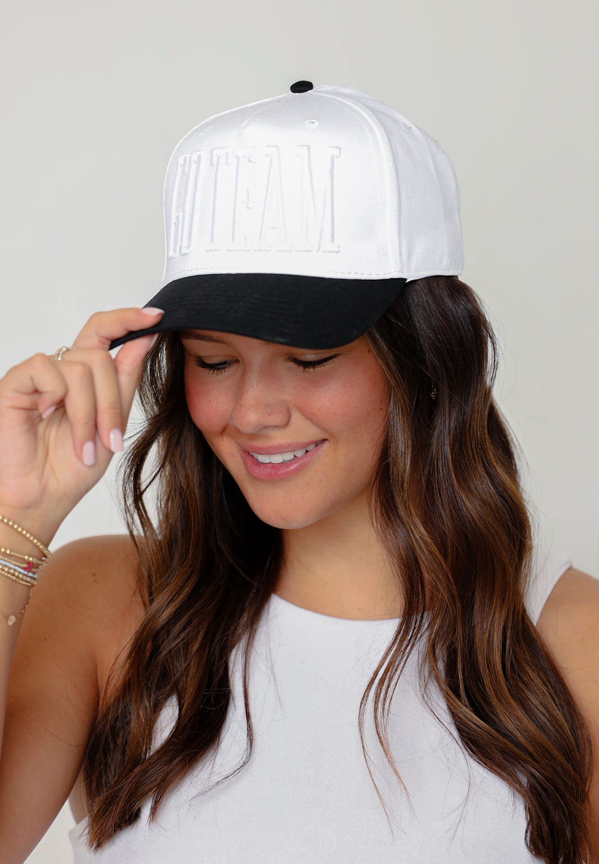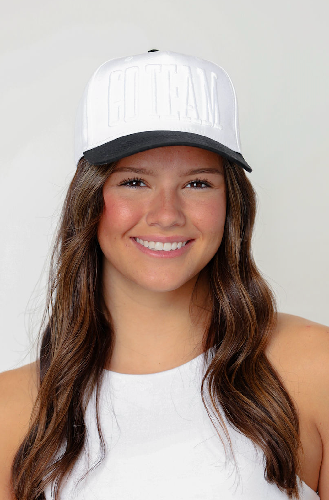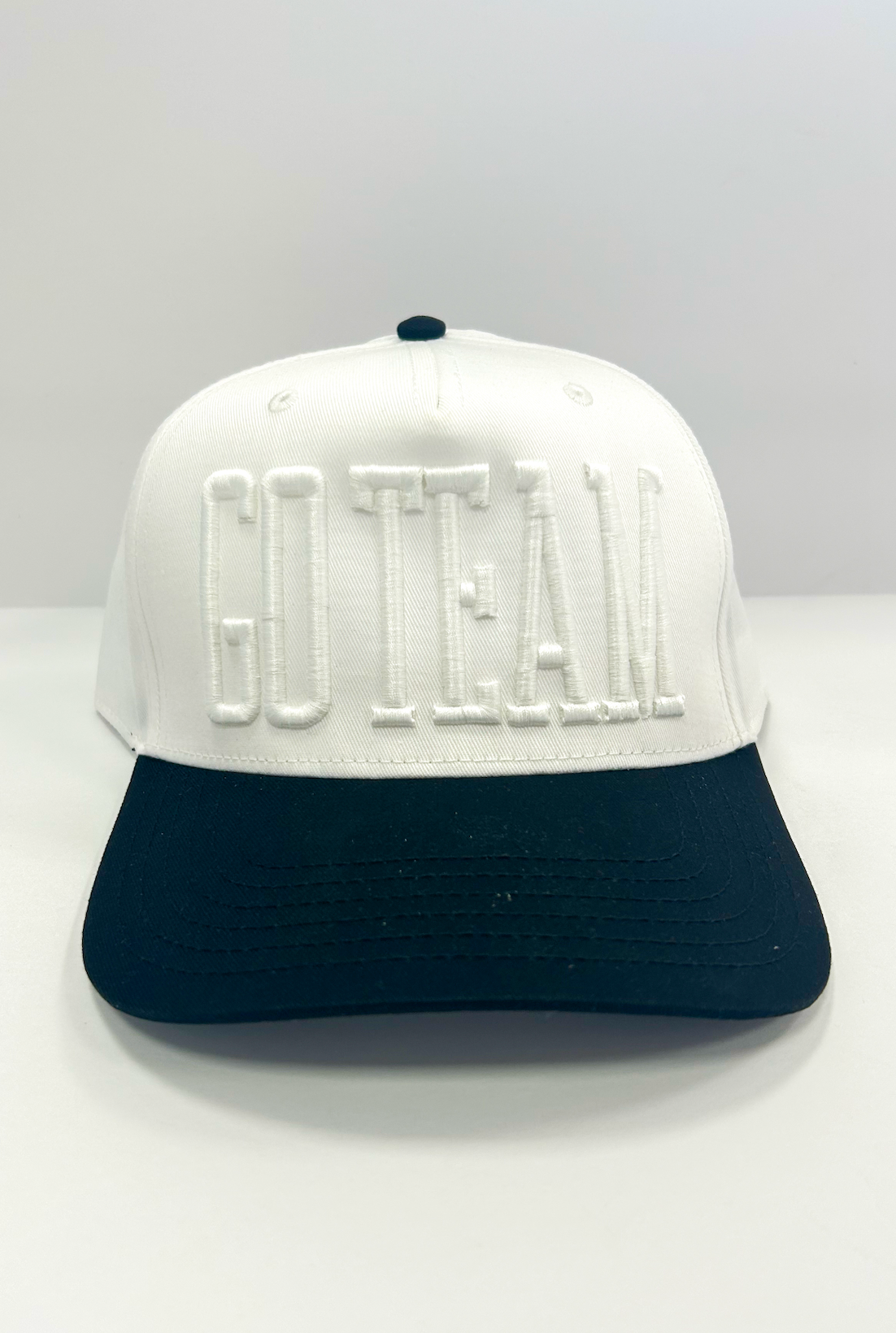 A clean, monochrome cap with bold white-on-white "GO TEAM" puff embroidery. An easy pick for game day, tailgates, or just showing a little spirit.