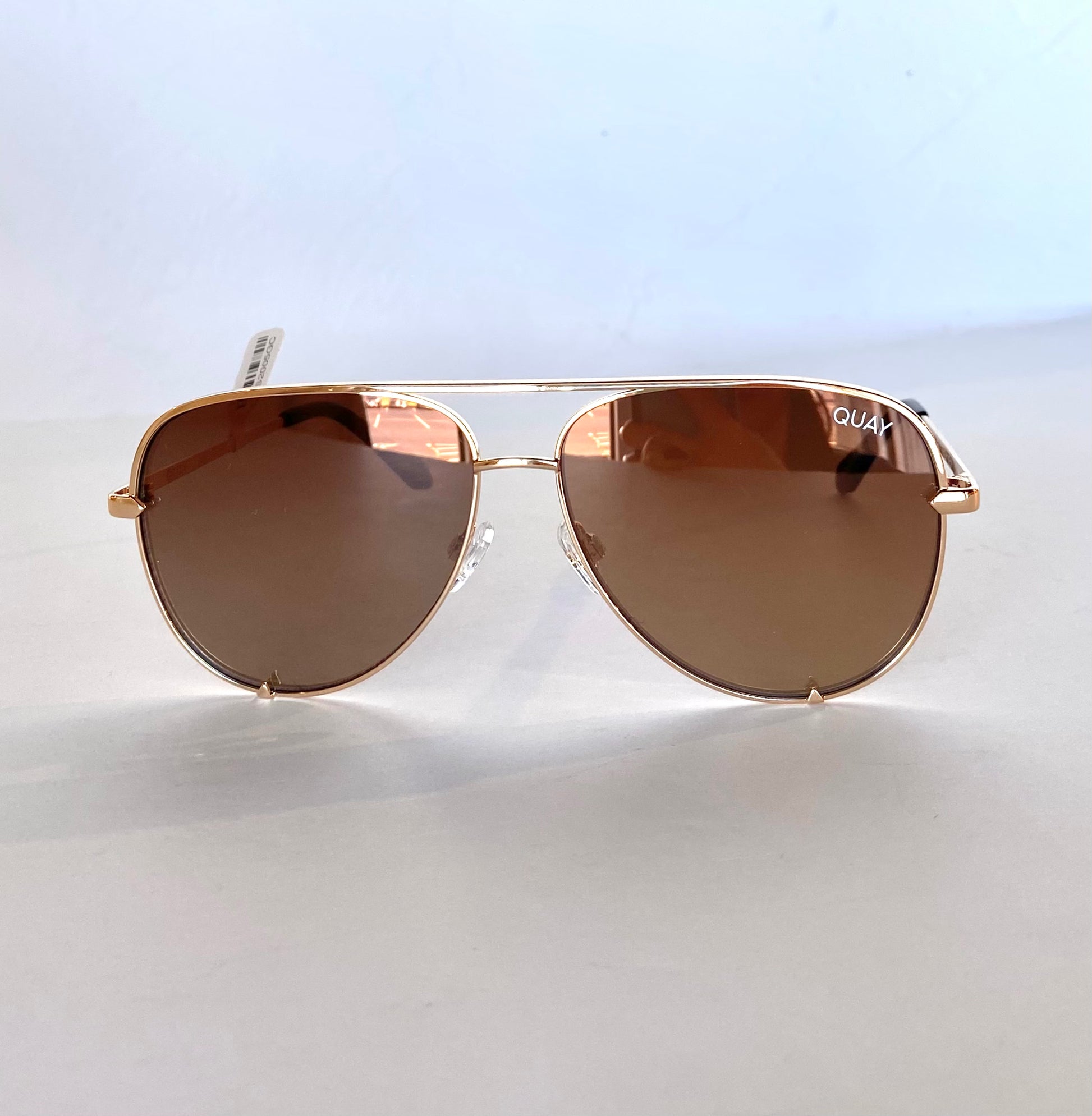 High Key Extra Large Quay Sunglasses - Gold/Champagne