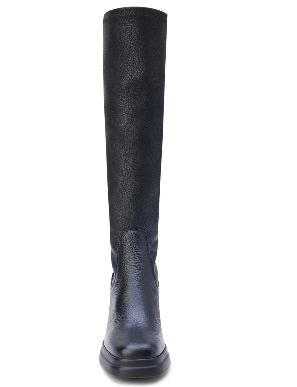 A bold, elevated take on a classic tall boot—these black leather beauties feature a chunky heel and sleek silhouette that pairs perfectly with everything.
