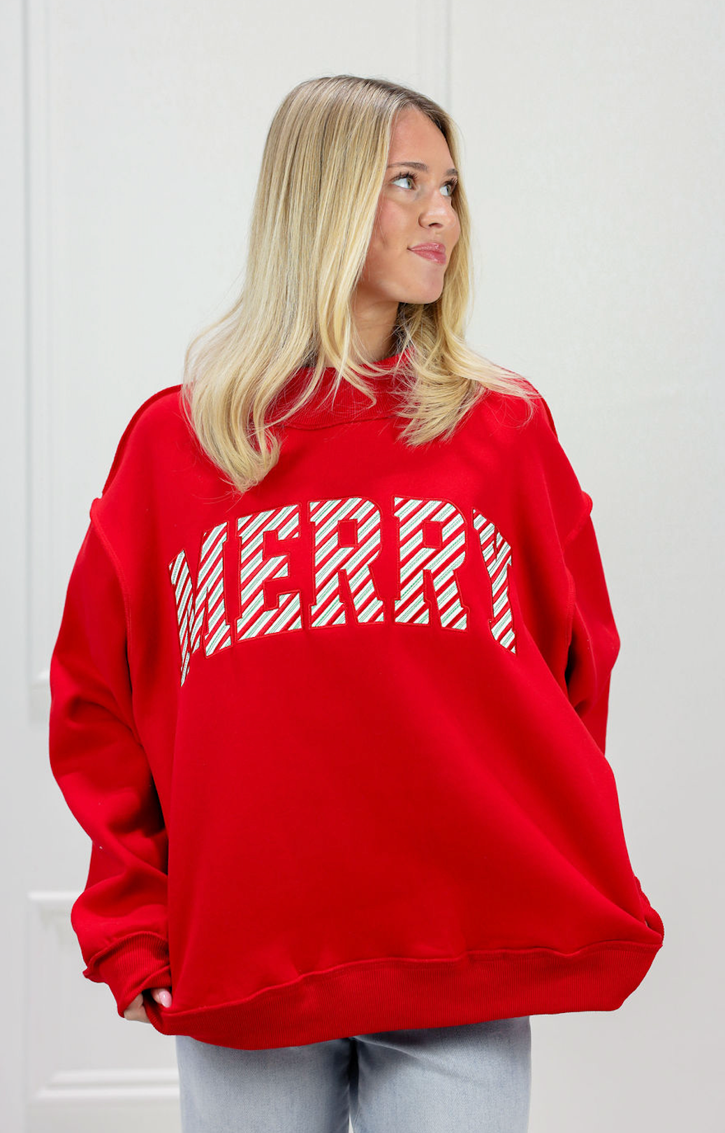 The Merry Embroidered Mock Neck in Red is a festive essential for the season. This cozy top features a classic mock neck and charming embroidered details that capture holiday spirit. The rich red color pairs perfectly with any bottoms in your closet, from jeans to skirts. Comfortable enough for all-day wear, it's ideal for holiday parties, family gatherings, or simply spreading cheer wherever you go.
