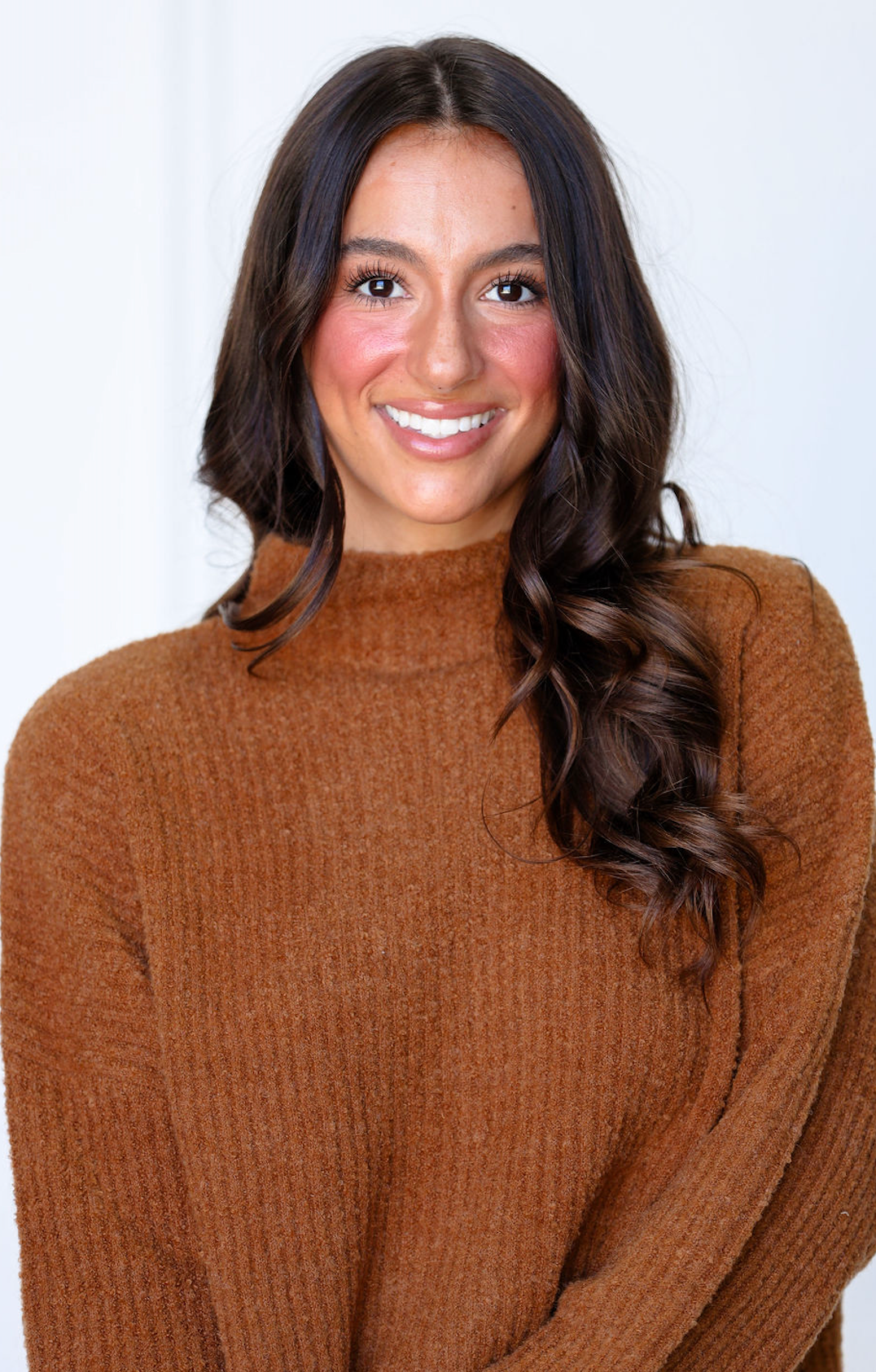 Cozy up in this oversized mock neck sweater in a warm ginger tone. The relaxed fit drapes effortlessly over your frame, perfect for layering or wearing solo on chilly days. Soft and comfortable, it's your go-to piece for casual weekends and laid-back vibes.