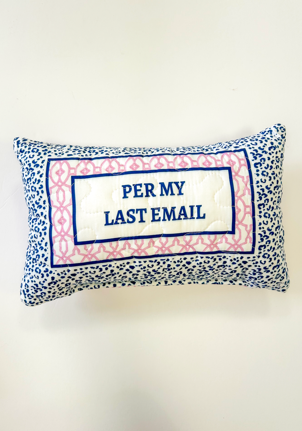 Add some snark to your space with the Per My Last Email pillow—a playful, cozy nod to office humor.