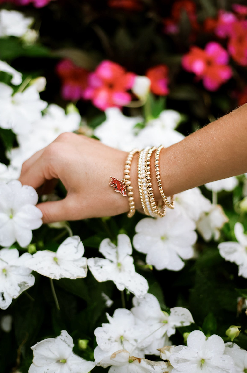 A simple and spirited addition to your stack—this Arkansas stretch bracelet features gold-toned beads and a Razorback charm for a subtle nod to your team pride.