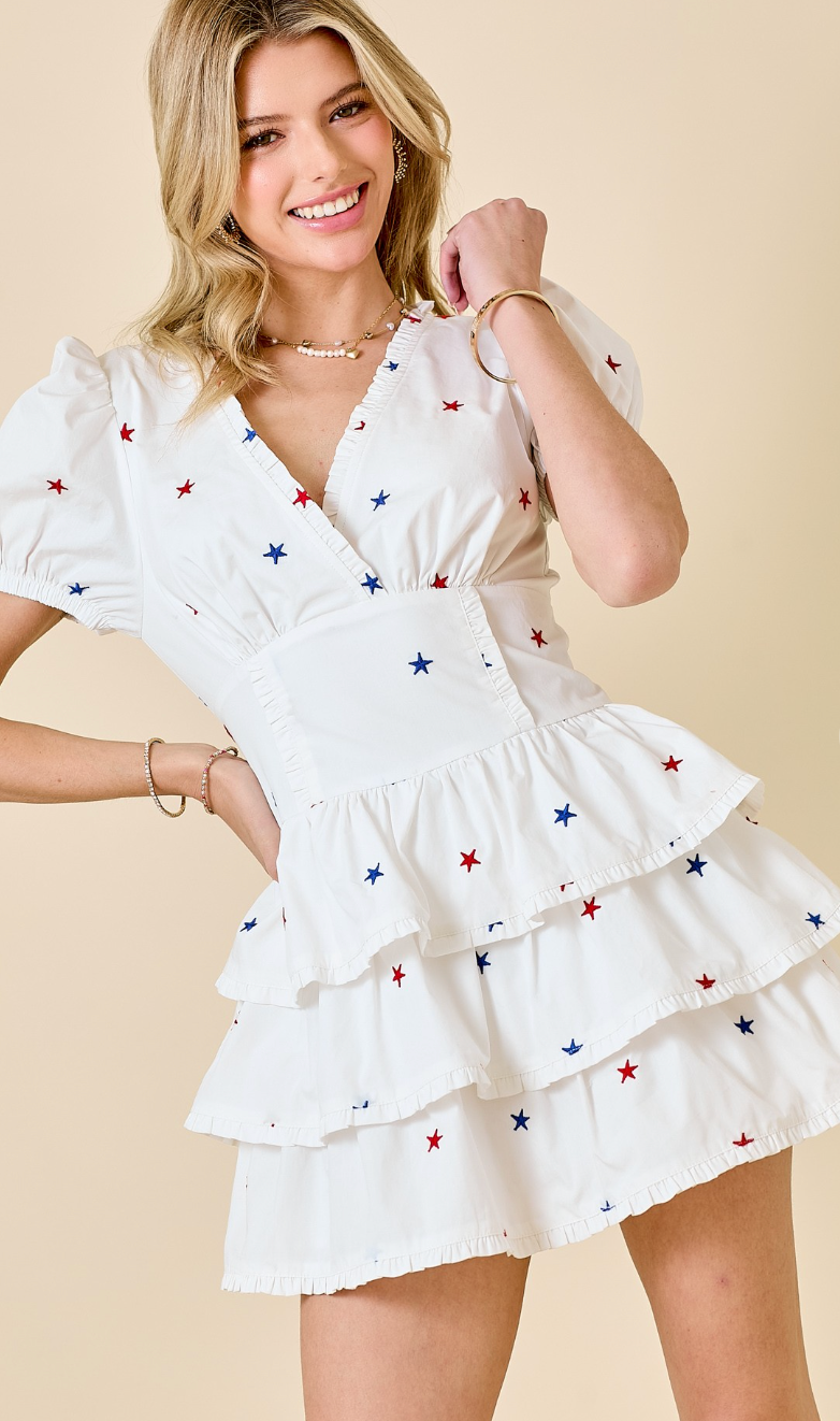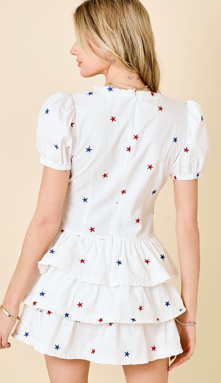 Star Embroidered Ruffle Romper Dress
