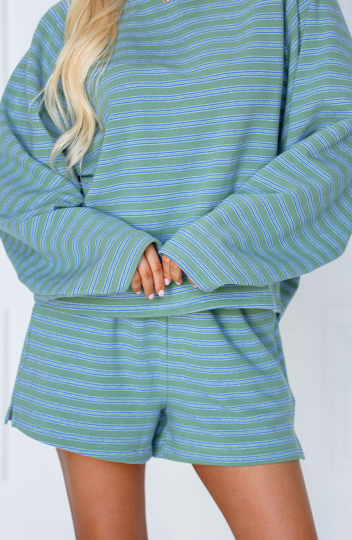 Refresh your warm-weather wardrobe with this striped top and shorts set of 2 in soothing sage. The coordinated striped pattern keeps styling simple while the soft sage tone feels fresh and modern. Perfect for lounging, running errands, or casual hangouts, this matching set offers comfort without compromise.