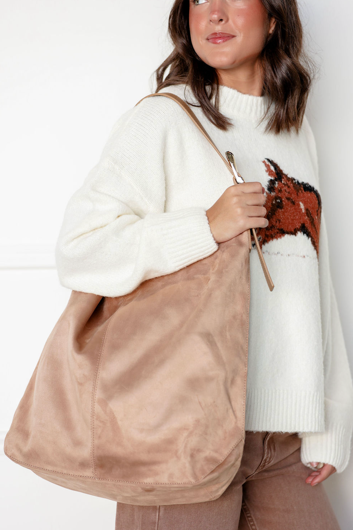 The Val Suede Tote is soft, slouchy, and effortlessly chic. With its roomy shape and luxe suede texture, it’s the perfect everyday carryall—whether you're heading to class, work, or the weekend.